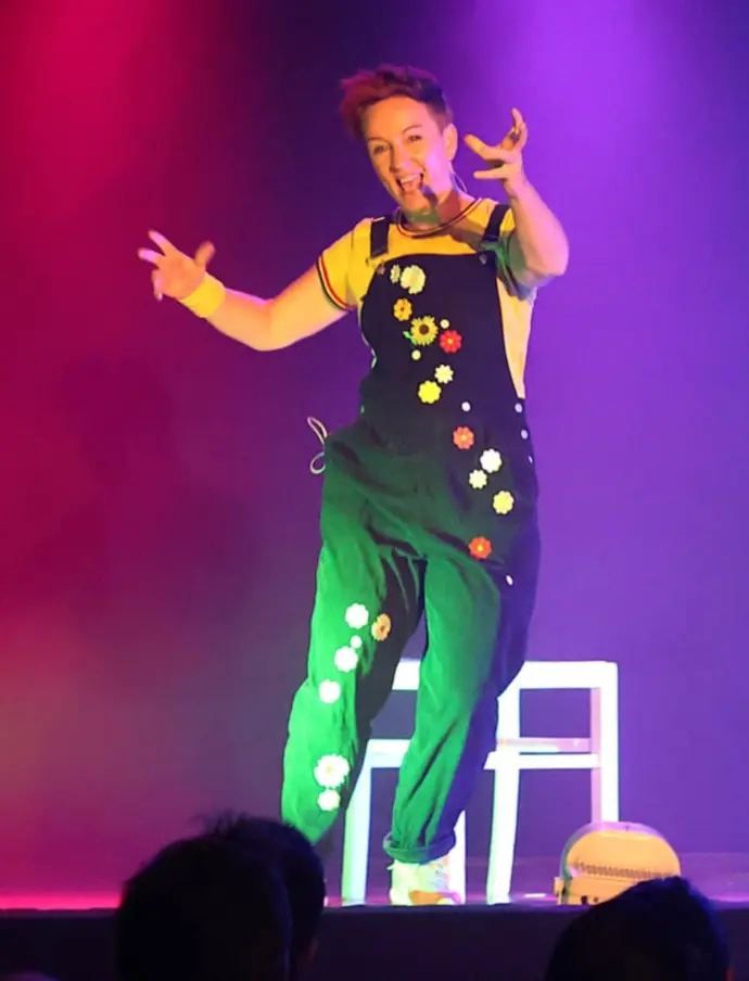 Liégeoise de cœur et de tempérament, elle partage avec son public une énergie contagieuse et une philosophie : oser la joie, même quand tout semble partir en sucette.